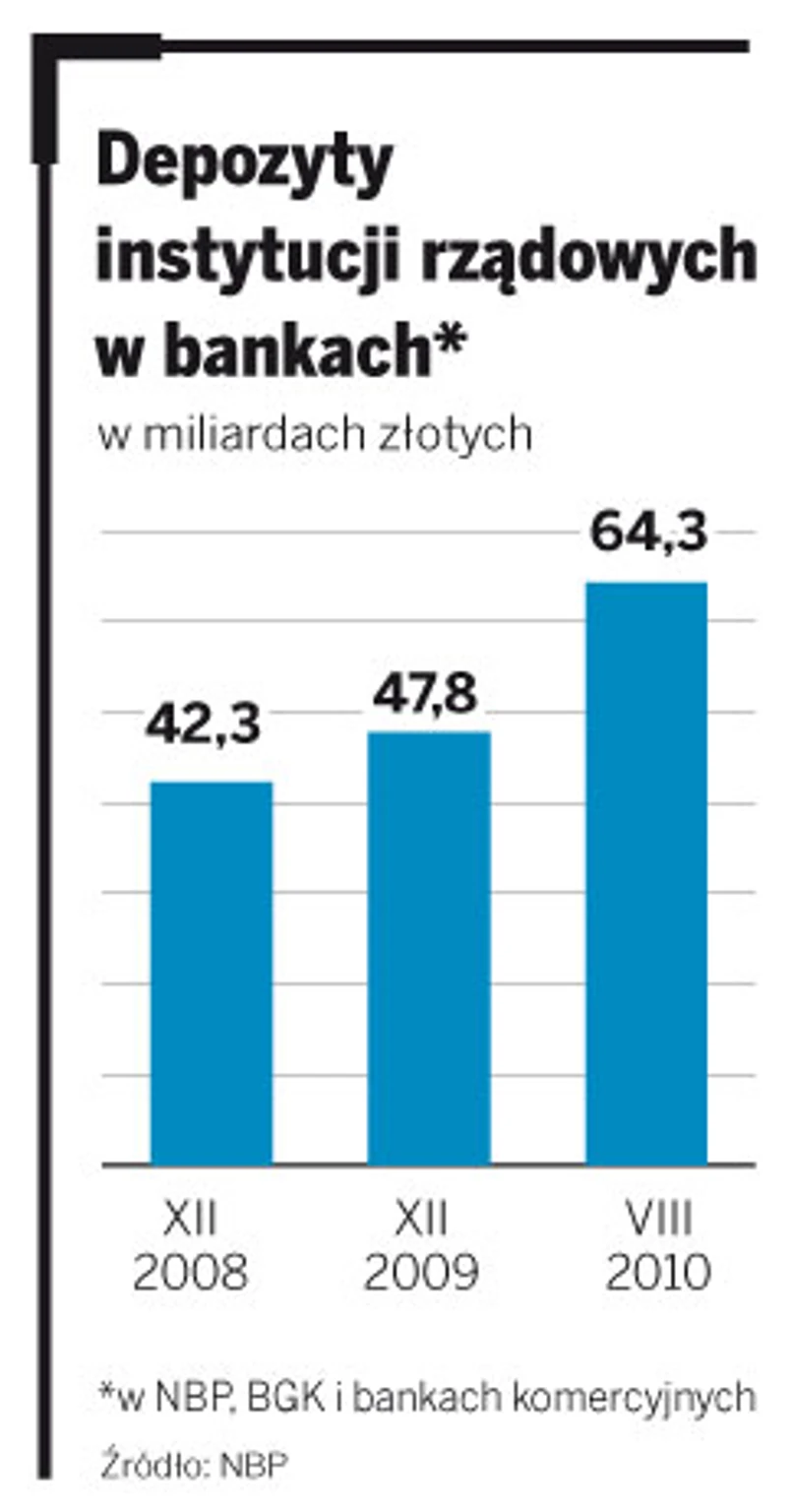 Obecnie depozyty samorządów lokowane są w komercyjnych bankach, podobnie robi także część instytucji rządowych. MF w uzasadnieniu do projektu nowelizacji ustawy o finansach publicznych szacowało, że łącznie samorządy i urzędy centralne na koniec 2009 roku miały 45 mld zł odłożone na kontach. W tym roku wolnych środków jeszcze przybyło. Według danych z NBP łączna wartość depozytów samorządów i instytucji rządowych w bankach wyniosła 61 mld zł na koniec sierpnia tego roku.