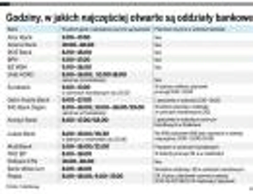 Oddziały są otwarte w godzinach, w których większość z nas pracuje. Tylko placówki w centrach handlowych są czynne dłużej i przeważnie również w weekendy.