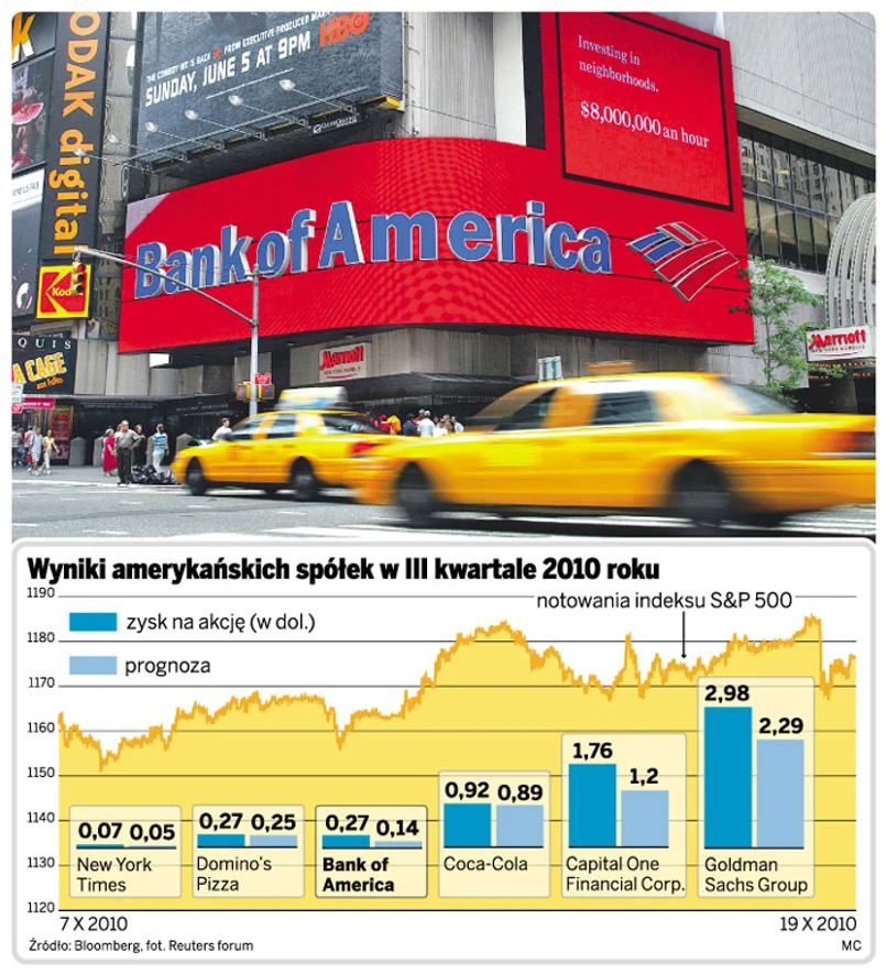 Przed rozpoczęciem wczorajszej sesji na Wall Street wyniki za poprzedni kwartał przedstawiły m.in. Goldman Sachs, Bank of America oraz Coca-Cola. Każda ze spółek pobiła oczekiwania analityków. Zysk na akcję Goldman Sachs wyniósł 2,98 dolara wobec oczekiwań na poziomie 2,29 dolara, a Coca-Cola zarobiła 0,92 dolara na akcji, podczas gdy średnia z prognoz wskazywała na 89 centów.