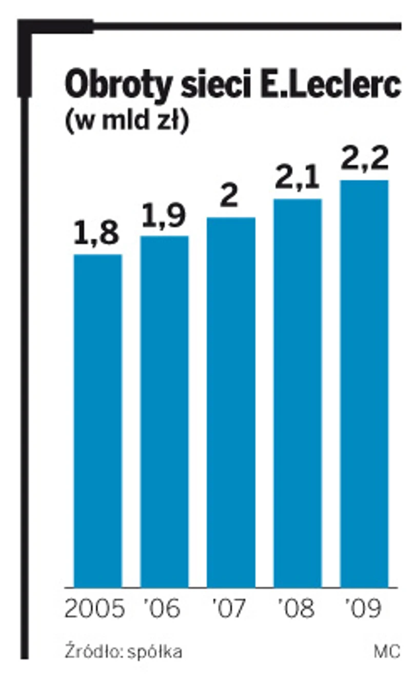 Nowe markety są potrzebne E.Leclercowi, bo sieć chce zostać jednym z pięciu największych graczy na rynku polskiej dystrybucji. Obecnie z obrotami na poziomie 2,281 mld zł i łączną powierzchnią sklepów 125 238 mkw. plasuje się na siódmym miejscu.