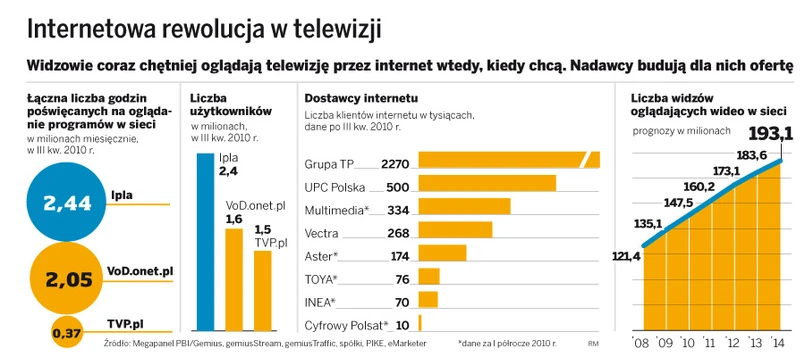 Najwięksi rywale na telewizyjnym rynku stworzyli już serwisy, za pomocą których można oglądać ich programy przez internet. Grupa TVN ma VoD.onet.pl, Polsat – Iplę. Teraz stawką stało się zwiększenie oglądalności.