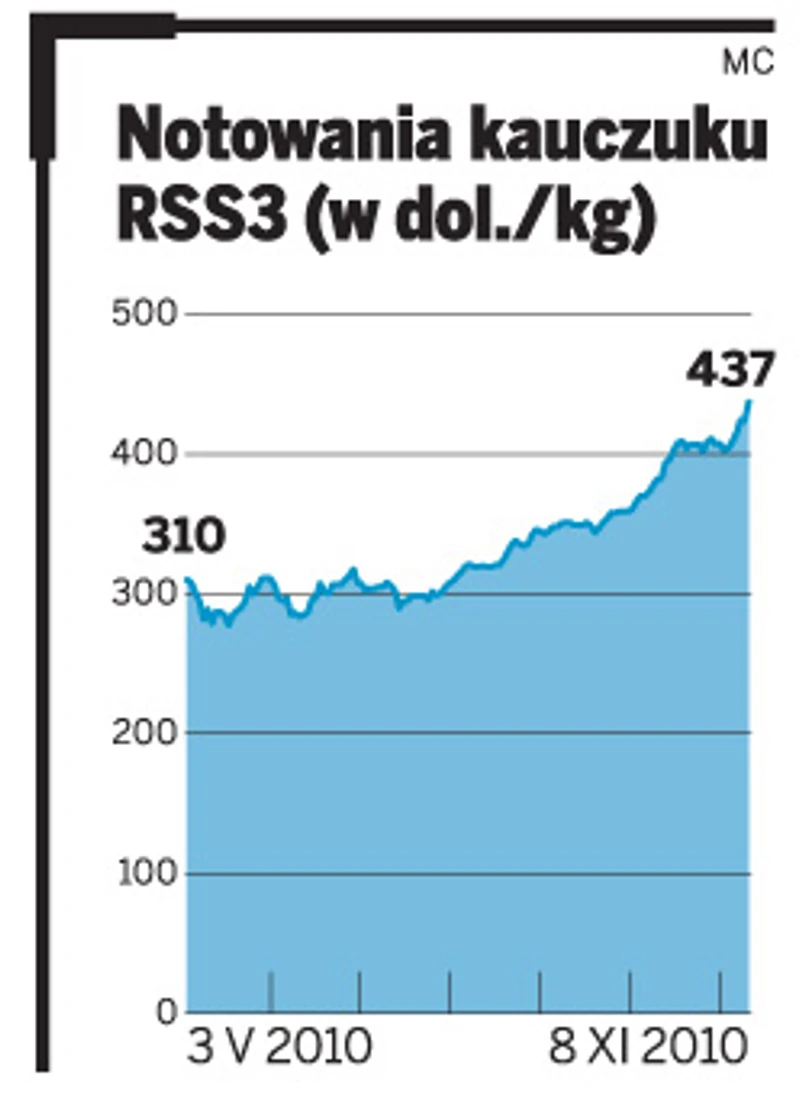 Od maja 2010 r. cena kauczuku, najważniejszego składnika gumy używanej do wyrobu opon, wzrosła aż o 41 proc., do 43,7 dol. za kilogram. Teraz do podwyżek szykują się producenci opon.