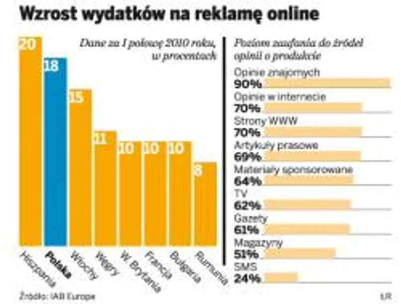 Trend ten wykorzystują firmy, które coraz więcej pieniędzy przeznaczają na reklamę online. Tylko w pierwszym półroczu 2010 r. wydały na promocję w sieci ponad 60 mln zł, czyli o 18 proc. więcej niż w tym samym okresie ubiegłego roku. Lepsza od nas była tylko Hiszpania, gdzie – jak wynika z opublikowanego właśnie raportu międzynarodowej firmy IAB Europe i PricewaterhouseCoopers, wydatki na promocje internetowe wzrosły w tym roku o 20 proc.