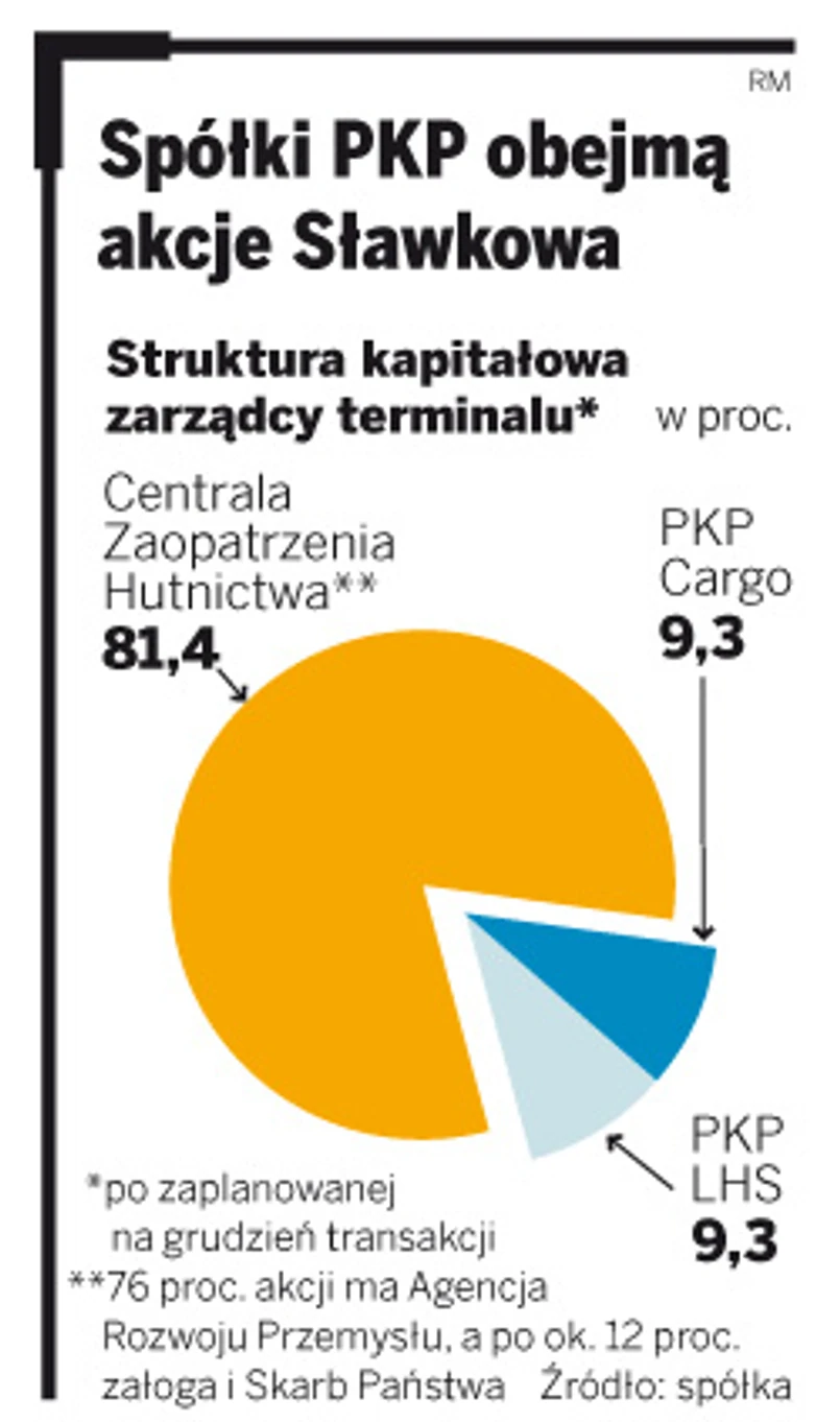 Konkurencja z niemieckim kolosem DB Schenker na czele musi jednak obejść się smakiem. Dzisiaj umowę dotyczącą kapitałowego wejścia do Sławkowa podpiszą PKP Cargo i PKP LHS – przewoźnicy z Grupy PKP. Większościowym udziałowcem pozostanie Centrala Zaopatrzenia Hutniczego.