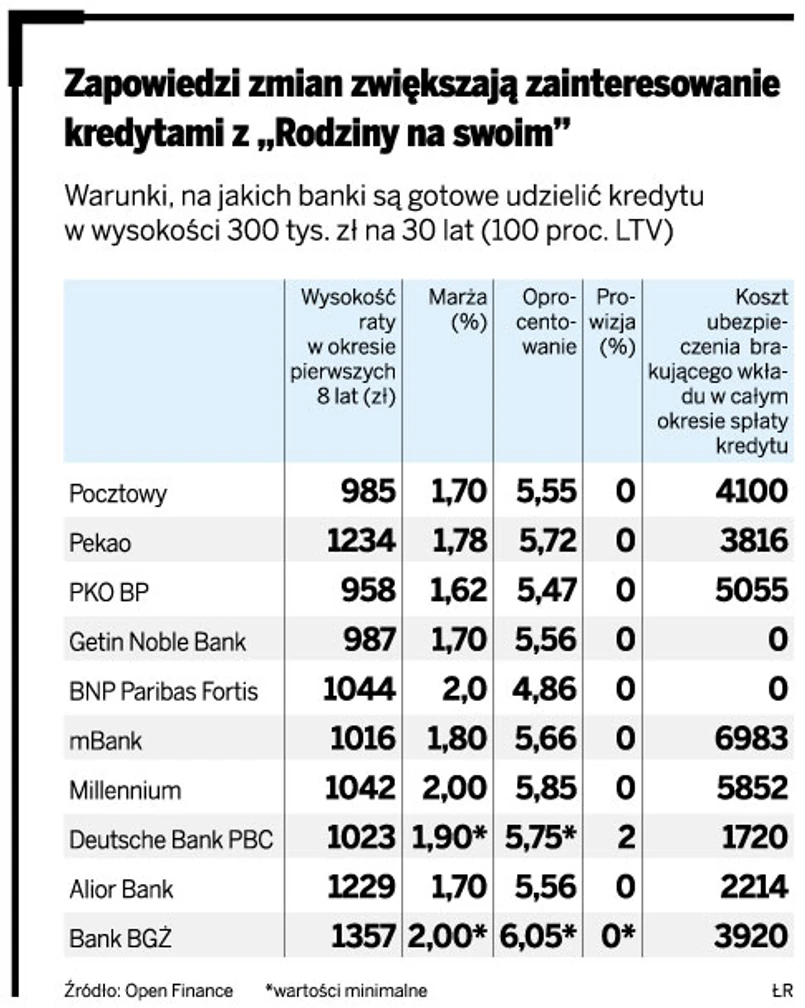– Wyjątkiem jest BZ WBK, który w programie „Rodzina na swoim” kredytuje zakup tylko 80 proc. wartości nieruchomości – mówi Halina Kochalska z Open Finance.