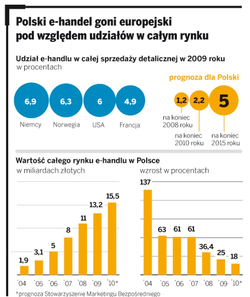 Z szacunków firmy doradczej Deloitte wynika, że w tym roku mikołajkowe i choinkowe prezenty przez internet kupi 30 proc. Polaków. To o połowę więcej niż przed rokiem. Ogółem zakupy w sieci stanowią dziś 5 proc. całego handlu detalicznego w Polsce. To oznacza, że przychody sklepów internetowych sięgają dziś blisko 15 mld zł. Branża jednak wyjątkowo szybko się rozwija, bo w 2015 r. przez internet ma być sprzedawanych 10 proc. towarów.