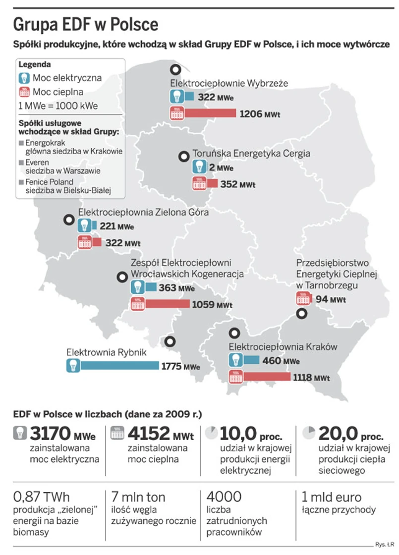 Obecnie EDF jest jedną z pięciu największych działających w Polsce
