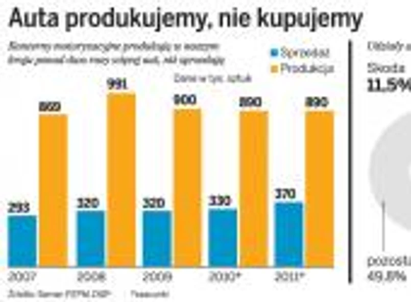 Ale jak ocenia, na tegorocznym poziomie utrzymana zostanie wielkość produkcji samochodów w naszym kraju. A to dlatego, że kondycja zakładów, w których produkowane są auta, uzależniona jest nie od tego, co się dzieje w Polsce, lecz od sytuacji w Europie, dokąd trafia ponad 90 proc. wytworzonych produktów. A w Europie zgodnie z większością opinii sprzedaż utrzyma się na tegorocznym poziomie.
