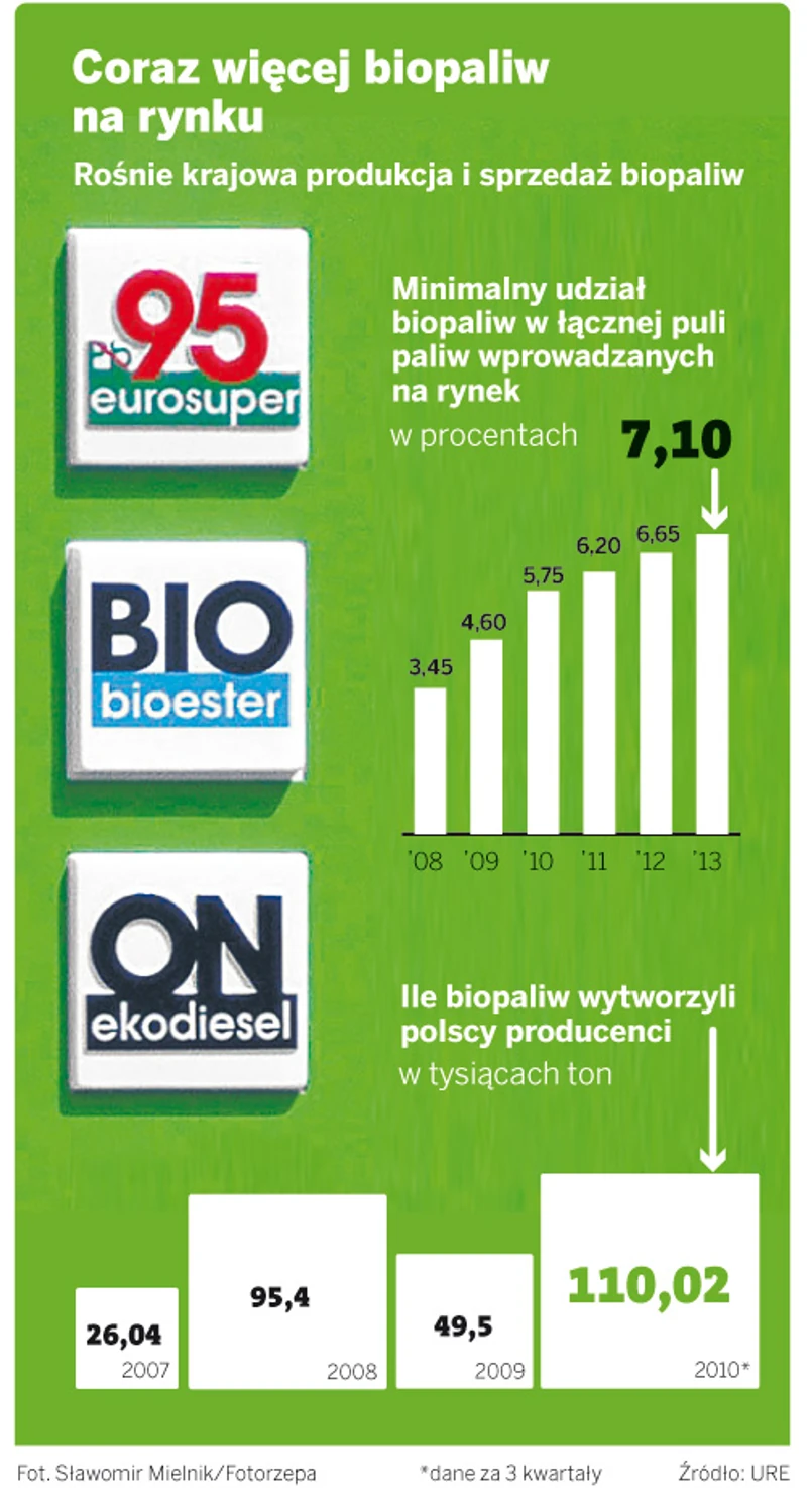 Mało który kierowca, tankując auto na dowolnej stacji w Polsce, zdaje sobie sprawę z tego, że do baku nie wlewa czystej benzyny czy oleju napędowego, ale z dodatkiem biokomponentów. Do tej pory ich udział w każdym litrze wynosił 5 proc. Jak się dowiedzieliśmy, od połowy 2011 r. przepisy umożliwią producentom paliw dodawanie większej ilości biokomponentów. W efekcie ich zawartość w dieslu może wzrosnąć do 7 proc.