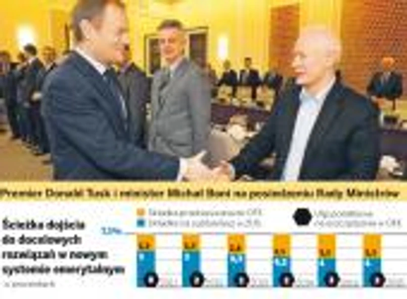 – To model, który gwarantuje bezpieczeństwo dzisiejszych emerytur. Daje szansę, że przyszłe będą wyższe, bo mają rosnąć stopa zastąpienia i bezpieczeństwo finansów publicznych – uzasadniał Tusk decyzję rządu.