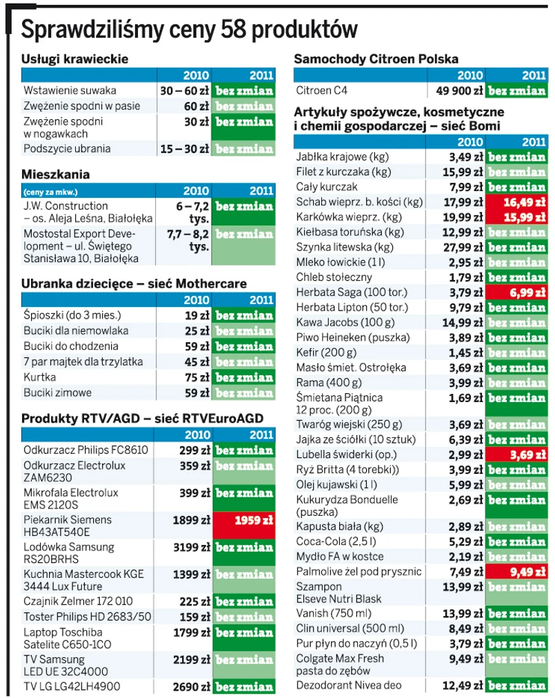 Początek roku przyniósł podwyżki stawki VAT, lecz – jak sprawdził „DGP” – nie odbiło się to na cenach produktów. Przeanalizowaliśmy koszyk podstawowych artykułów spożywczych, kosmetycznych oraz sprzętu AGD i RTV. Porównaliśmy ceny mebli, mieszkań oraz usług pralniczych, krawieckich przed Nowym Rokiem i po nim.