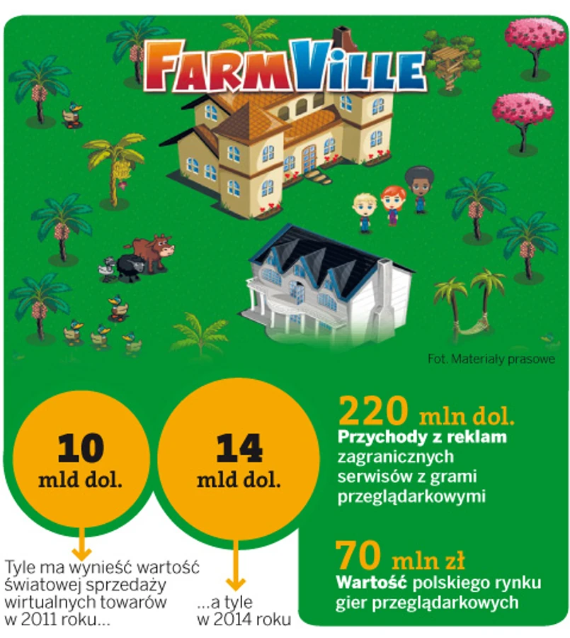 Dodatkowo właściciele gier zarabiają krocie na mikropłatnościach. Gdy gracz chce przejść na wyższy poziom, łatwiej zdobyć nową krowę czy supersilny miecz, może za to zapłacić. To są zazwyczaj małe opłaty po kilkadziesiąt centów czy kilka złotych. Jednak badania wskazują, że na całym świecie w 2011 r. wartość sprzedaży z tych wirtualnych dóbr w grach wyniesie ok. 10 mld dol., a w 2014 r. będzie to już 14 mld dol.