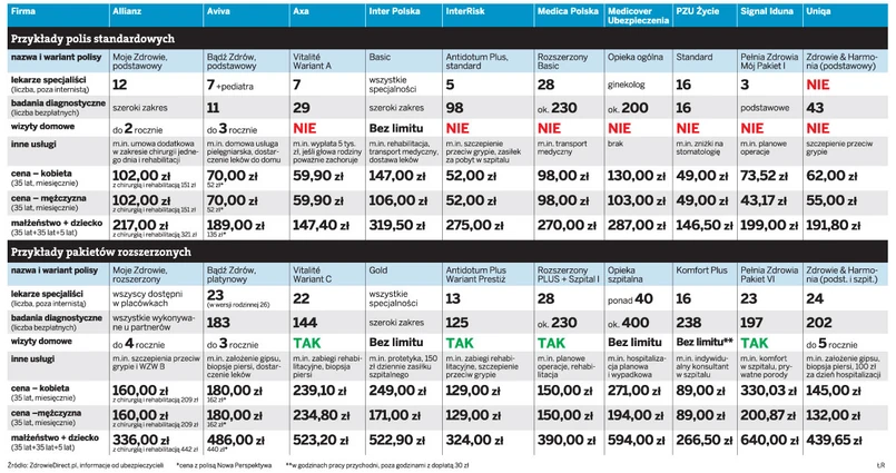Mimo wszystko zalecamy jednak uważne czytanie wykazów świadczeń. Dla ułatwienia można skorzystać z porównywarek internetowych.