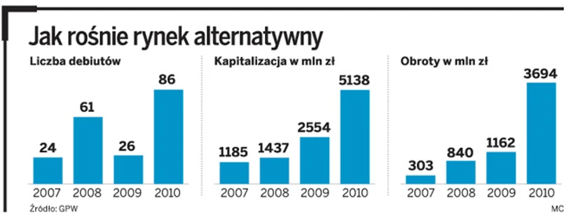 Przedstawiciel brokera przewiduje, że w najbliższej przyszłości spółek myślących podobnie będzie coraz więcej. A to dlatego że procedury związane z wejściem na NC są o wiele prostsze i mniej czasochłonne niż w przypadku debiutu na głównym rynku. Wchodząc tu, spółka nabiera doświadczenia i może lepiej przygotować swoją kolejną ofertę na GPW.