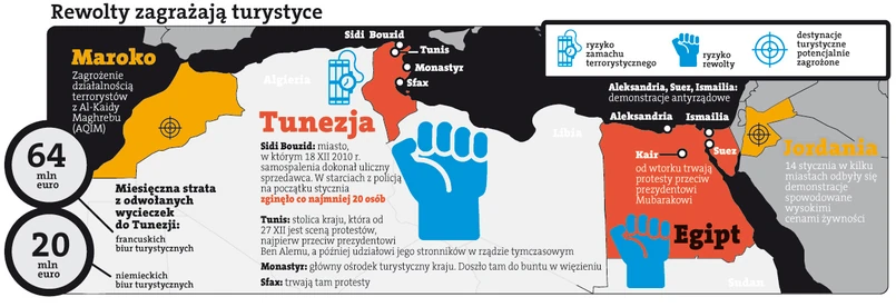 Zamieszki w krajach afrykańskich uderzają w polskich touroperatorów. Z Egiptu żyje 15 z 25 największych biur podróży. Zimą wysyłają tam 100 tys. turystów. Jeśli będą musiały ich ewakuować, stracą miliony, a część zbankrutuje.