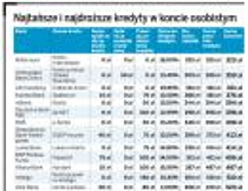 Na drugim końcu naszej tabeli znalazły się: na ostatnim miejscu MultiBank z kredytem w MultiKoncie ja, na przedostatnim miejscu Pekao SA z ofertą Eurokonta Aktywnego oraz na trzecim miejscu od końca BPH z kredytem w koncie Sezam Direct. O ostatnim miejscu MultiBanku zdecydowała między innymi prowizja za udzielenie kredytu wynosząca aż 250 zł. Bank ten stosuje widełki dla prowizji, których górny pułap to aż 5 proc. – W przypadku widełek zawsze braliśmy pod uwagę ich maksymalną możliwą wartość, gdyż nie ma gwarancji, że klient zapłaci mniejszą prowizję – mówi Jarosław Sadowski.
