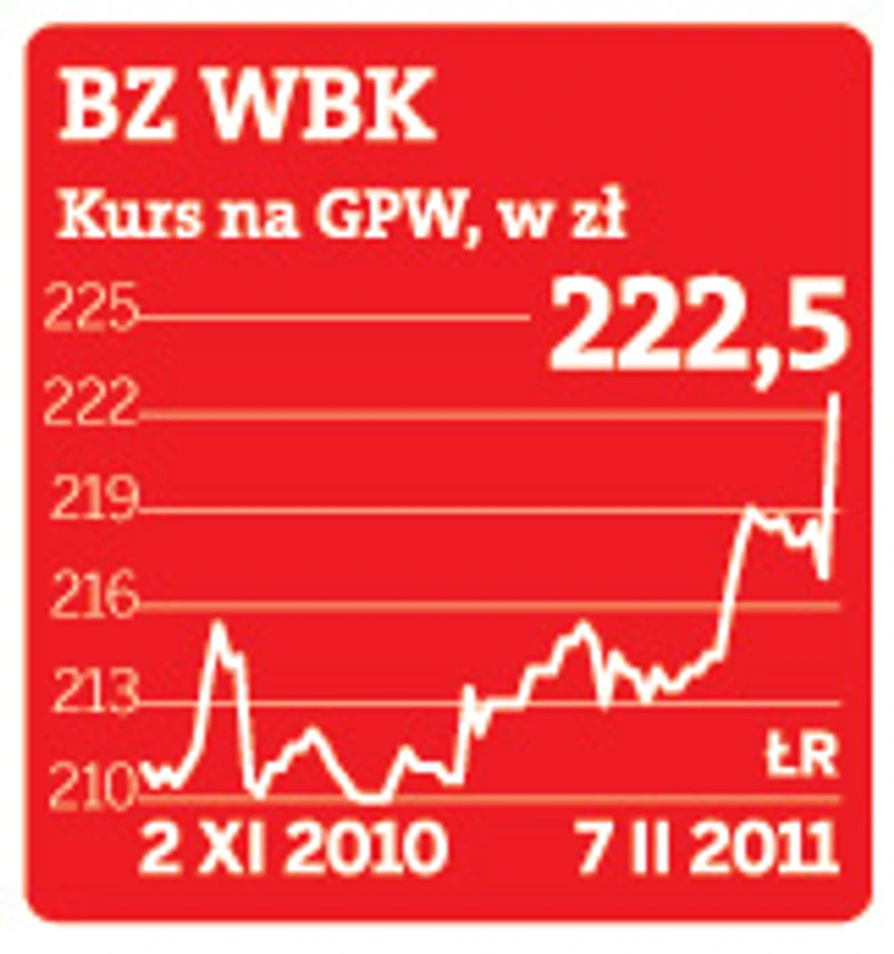 Hiszpanie chcą skupić 100 proc. akcji polskiego banku, a za jedną zaproponowali 226,89 zł. Takiej ceny rynek się spodziewał, jako że zbliżona jest ona do tej, którą Santander zgodził się zapłacić irlandzkiemu AIB za udziały BZ WBK. W rezultacie kurs akcji polskiego banku powoli rósł. Gdy opublikowano informację, że rywalizację o polski bank wygrał Santander, papier BZ WBK kosztował nieco poniżej 195 zł, a w piątek było to 217 zł. Wczoraj, kiedy Hiszpanie ogłosili wezwanie, cena papieru podskoczyła do 222,5 zł, czyli tylko o 2,5 proc.