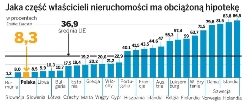 Tak duże różnice to efekt zaszłości historycznych. W czasach PRL kredytów na mieszkania praktycznie nie było.
