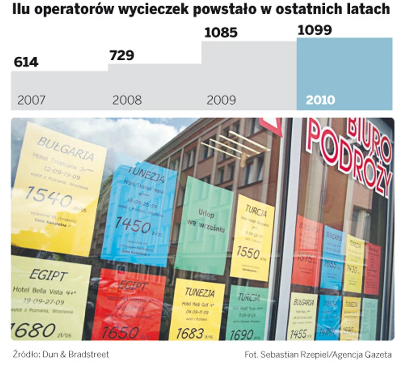 Dane te znajdują swoje potwierdzenie w liczbach Instytutu Turystyki, z których wynika, że w Centralnej Ewidencji Organizatorów Turystyki i Pośredników Turystycznych w 2010 r. zarejestrowane były 3074 podmioty, które posiadają zezwolenie na prowadzenie działalności. Największa koncentracja podmiotów turystycznych występuje na terenie województw o największym potencjale wyjazdowym mieszkańców i dużych walorach turystycznych. Na Mazowszu działa 614 organizatorów wycieczek, co stanowi 20 proc. wszystkich podmiotów turystycznych, które posiadają zezwolenie na prowadzenie działalności. Na dominującą pozycję tego centralnego województwa wpływa fakt, że większość biur otwiera w stolicy przedstawicielstwa.