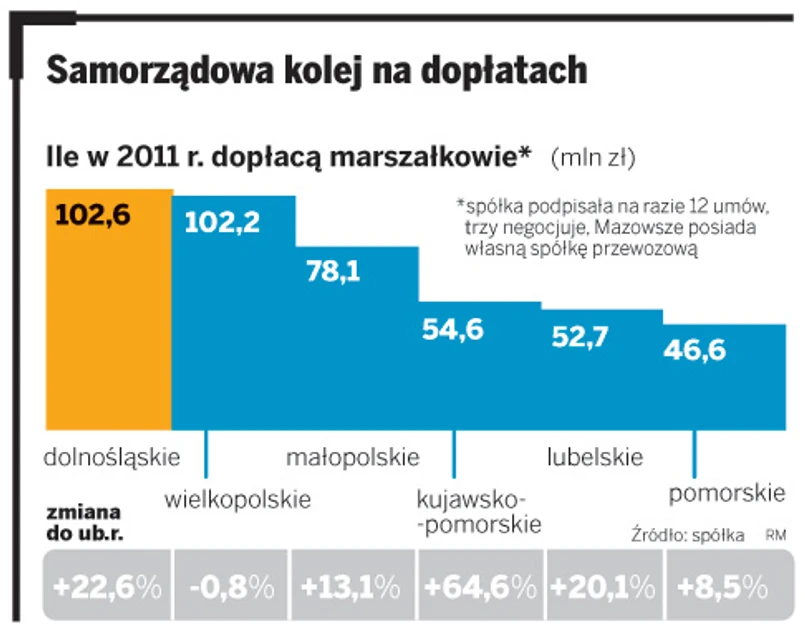 Dla porównania zakup 20 szybkich pociągów przez PKP Intercity, również dofinansowany ze środków unijnych, ciągnie się 2,5 roku. Małgorzata Kuczewska-Łaska chce, by pierwsze nowe składy PR wyjechały na tory nawet na przełomie 2012 i 2013 r., a najpóźniej w połowie 2013 r.