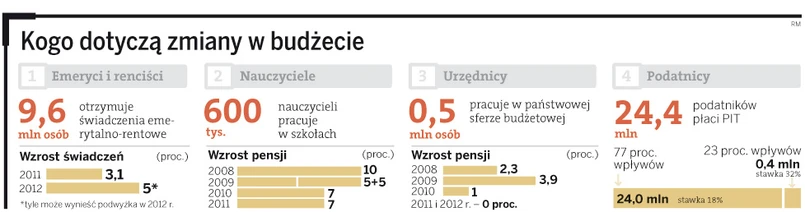 - rząd może nie podnieść pensji 0,6 mln nauczycieli – tu ostateczna decyzja jeszcze nie zapadła, choć resort finansów skłania się do braku podwyżek,