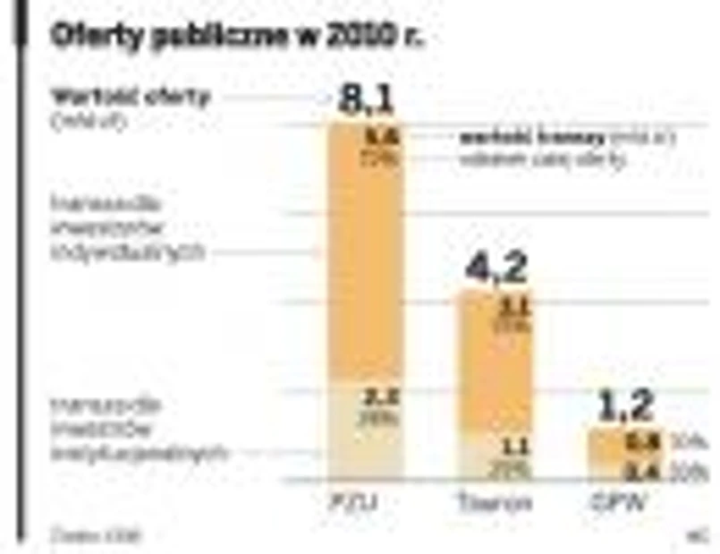 Analitycy nadal mają sporo pytań dotyczących sprzedaży PKO BP. Przede wszystkim chcieliby się dowiedzieć, jaka ostatecznie będzie wartość oferty oraz jaką część sprzedawanego pakietu dostaną instytucje, a jaką inwestorzy indywidualni. Minister pytany o to, ile akcji trafi do inwestorów indywidualnych, odpowiedział, że będzie to co najmniej jedna trzecia pakietu. Oznacza to, że w transzy detalicznej sprzedany zostanie pakiet wart między 1,75 mld zł a nawet 4 mld zł. Nikt nie ma za to wątpliwości, że chętnych na walory PKO BP nie zabraknie. – Oferta publiczna banku powinna się spotkać z dużym zainteresowaniem ze strony zarówno inwestorów instytucjonalnych, jak i indywidualnych – mówi Kamil Stolarski z Espirito Santo Investment Bank.