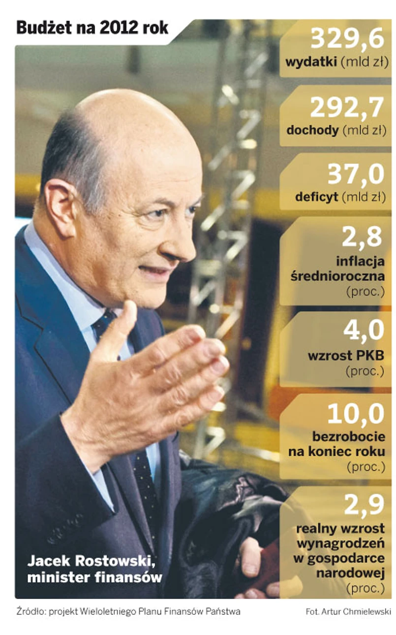 Rada Ministrów ma dzisiaj przyjąć założenia makroekonomiczne (patrz grafika), na podstawie których zostanie skonstruowany budżet. Zajmie się też wieloletnim planem finansowym państwa na lata 2011 – 2014. Tempo jest ekspresowe – rząd chce doprowadzić do jego uchwalenia najszybciej po 1989 roku. W poprzednich latach założenia były znane najwcześniej w czerwcu, a sam projekt we wrześniu. Tym razem, jeśli rząd przyjmie dzisiaj założenia, to według zapewnień resortu finansów wstępny projekt ma być znany w ciągu miesiąca. Potem czekałyby go konsultacje z Komisją Trójstronną i przyjęcie przez rząd. Może się to stać na przełomie maja i czerwca. Zaraz potem budżet będzie już w Sejmie. Parlament miałby wtedy na uchwalenie ustawy czas do końca lipca – przed wakacyjną przerwą, która zaczyna się w sierpniu.