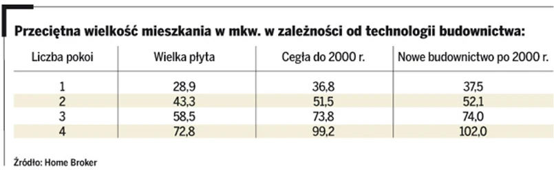 – Można w nim kupić ponad dwa razy większe mieszkanie niż w nowym budownictwie. Wynika to z tego, że w blokach z wielkiej płyty mieszkania są o 1/4 mniejsze przy tej samej liczbie pokoi. Poza tym każdy mkw. jest o tyle samo tańszy niż w nowym bloku – wyjaśnia Bartosz Turek, analityk rynku nieruchomości Home Broker.