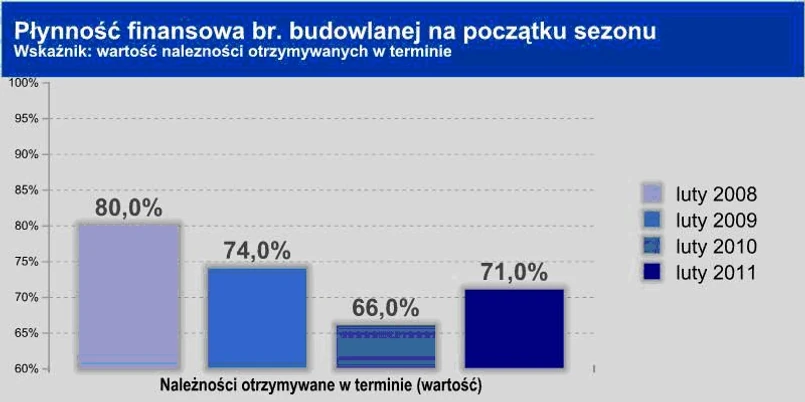 Wraz z rozpoczęciem sezonu budowlanego, oprócz pozytywnych sygnałów płynących z branży budowlanej – między innymi powoli rosnącej (od drugiej połowy 2010 r.) liczby zleceń – pojawiają się także sygnały o słabej płynności finansowej wielu firm budowlanych (a w ślad za tym – także zaopatrujących ich dostawców).