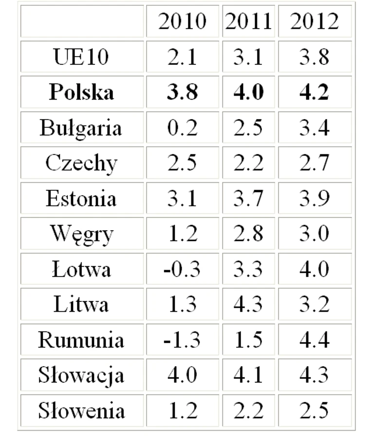 Eksperci BŚ prognozują, że PKB Polski wzrośnie w tym roku o 4,0 proc., a w przyszłym – o 4,2 proc. Nieco lepsze szacunki PKB – o 0,1 proc. – przygotowano tylko dla Słowacji.