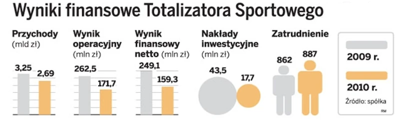 Z tym w ostatnich latach nie było najlepiej zarówno pod względem przychodów, jak i wyniku netto. W zeszłym roku zysk obniżył się o 90 mln zł w porównaniu z 2009 r. W tym roku może być jednak lepiej. W I kw. 2011 r. sprzedaż produktów Totalizatora Sportowego wzrosła w porównaniu z 2010 r. o 15,9 proc. W efekcie I kwartał 2011 r. Totalizator Sportowy zakończył sprzedażą z działalności podstawowej na poziomie 761 mln zł – o 105 mln zł więcej niż rok temu.