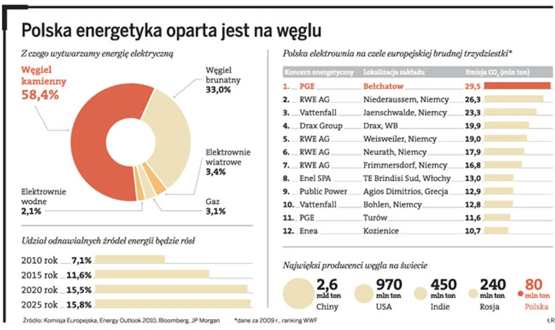 Nasza gospodarka napędzana jest energią wytworzoną w ponad 90 proc. z węgla, na dodatek z bliskich całkowitej dekapitalizacji elektrowni. Dziś to jeszcze nie tak palący problem, ale 1 stycznia 2013 r. znikną darmowe uprawnienia do emisji dwutlenku węgla, które dziś otrzymuje polski przemysł. To pokłosie rozpętanej przez Komisję Europejską w 2008 r. krucjaty przeciwko emisji gazów cieplarnianych.