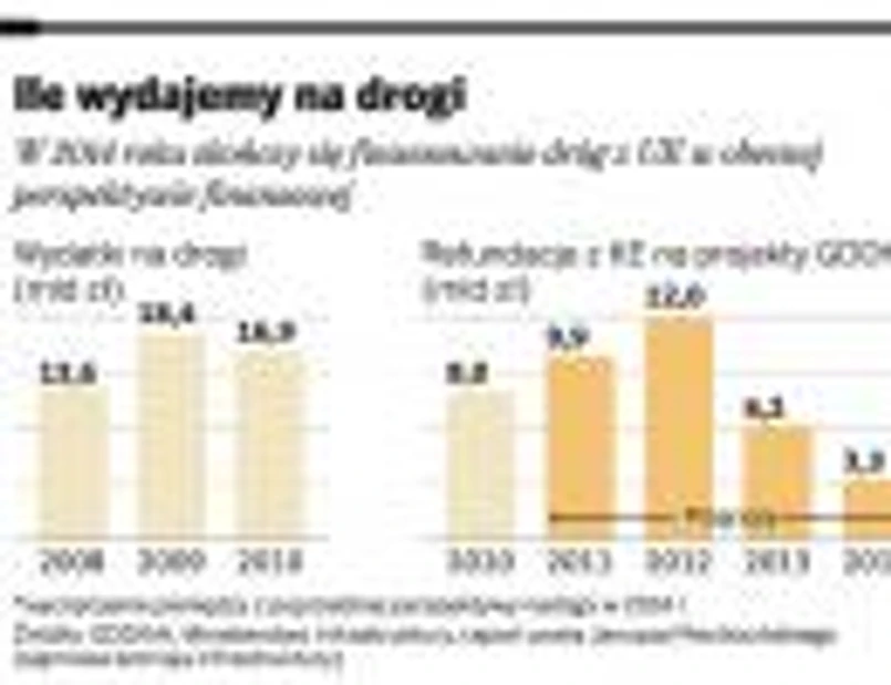 Przez ostatnie lata inwestycje drogowe napędzane były głównie przez unijne dotacje. Na kontraktach zarabiają wielkie konsorcja budowlane i ich podwykonawcy – głównie małe i średnie firmy z Polski. Ale drogowe eldorado może się wkrótce skończyć z wyczerpaniem środków unijnych pochodzących z perspektywy finansowej 2007 – 2013. W przyszłym roku Polska powinna otrzymać od Komisji Europejskiej ok. 12 mld zł na inwestycje drogowe. Ale już w 2013 r. mamy uzyskać tylko połowę tej kwoty (6,2 mld zł). Jeszcze gorzej będzie w 2014 r. – wtedy refundacja ma wynieść tylko 3,3 mld zł.