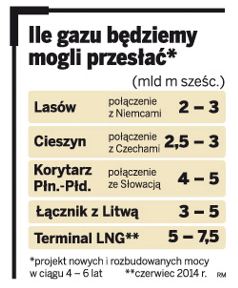 Dzięki nim zyskamy możliwość importu i eksportu nawet ponad 20 mld m sześc. gazu, z kierunków alternatywnych wobec Rosji. Dziś nasze możliwości przesyłu gazu z Zachodu to zaledwie 1 mld m sześc.