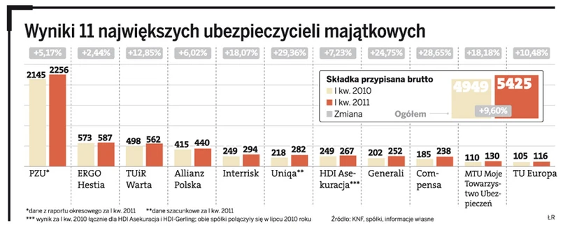 O 29 proc., do 282 mln zł wzrosła w pierwszym kwartale tego roku wartość składek zebranych przez TU Uniqa. Tym samym towarzystwo dołączyło do grona ubezpieczycieli, którzy odnotowali dwucyfrową dynamikę wzrostu sprzedaży. Ponad 20-proc. wzrost mają na swoim koncie wchodząca w skład grupy VIG Polska Compensa czy też Generali.
