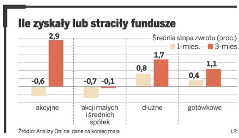 Podmioty dłużne osiągnęły w maju średnią miesięczną stopę zwrotu w wysokości 0,8 proc., a najlepszy z nich – PZU Polonez – zarobił 1,6 proc. Fundusze akcyjne straciły średnio 0,6 proc.