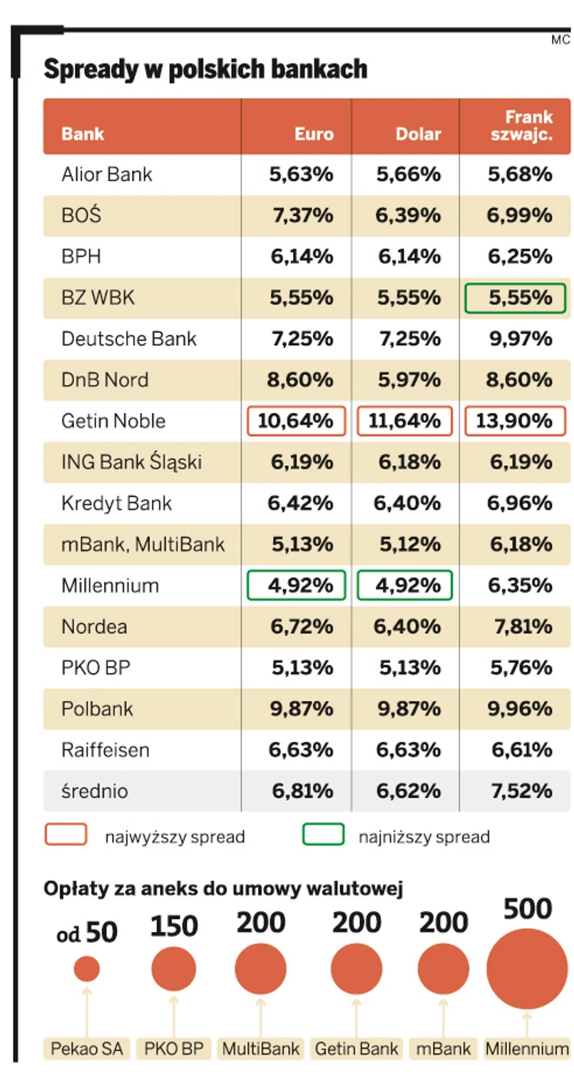 Nowelizacja ma włączyć do tej ustawy kredyty hipoteczne i wcielić w życie rekomendację Komisji Nadzoru Finansowego, zgodnie z którą osoby spłacające kredyty walutowe mogą spłacać raty kapitałowo-odsetkowe bezpośrednio w walucie obcej. Obecnie banki chcą, aby klienci, którzy chcą to robić, podpisywali aneksy do umów, tyle że nawet za kilkusetzłotową dopłatą. – Teraz ma być tak, że klient banku będzie mógł kupić walutę w kantorze i bez żadnych dodatkowych opłat spłacać ratę kredytu – podkreśla Neumann. Jego zdaniem doprowadzi to do zmniejszenia spreadów. – Bankom będzie zależało, aby nie obsługiwać gotówki. Lepiej będzie im obniżyć spready i zachęcać klientów do kupowania waluty u nich – uważa Neumann. Zdaniem polityków PO nowe przepisy szybko same wyregulują rynek. Ale Ryszard Petru, przewodniczący rady nadzorczej Domu Inwestycyjnego Investors, zwraca uwagę, że to może nie wystarczyć. – Banki mogą wymyślić nowy sposób, aby zniechęcać klientów do takiej aktywności. Ale to jest dobry kierunek, zwłaszcza jeśli ma rynek zachęcać, a nie zmuszać – podsumowuje Petru.