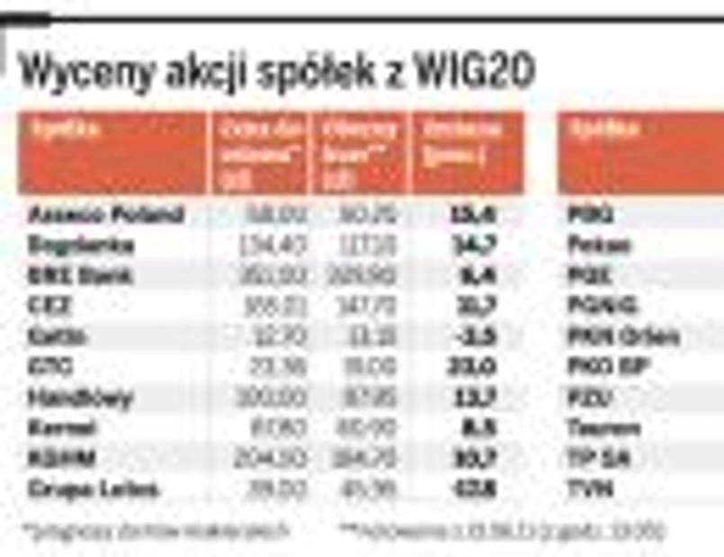 Atrakcyjnie wyglądają również budowlany PBG (możliwy wzrost kursu szacowany na około 27 proc.) i deweloperski GTC (+23 procent). Z kolei w gronie instytucji finansowych ciekawą propozycją są papiery PKO BP (+18,4 proc.).