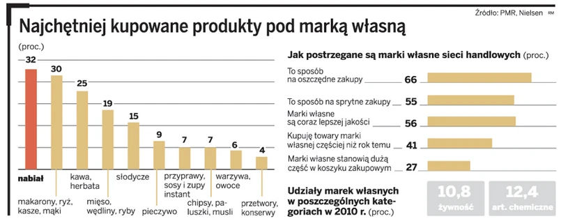 Dla klientów sklepów im więcej towarów z logo sieci, tym lepiej. Są one bowiem od 20 do aż 40 proc. tańsze od produktów tradycyjnych marek. Bardziej sceptycznie patrzą na to producenci, gdyż za wyższą jakość sieci handlowe nie chcą płacić wiele więcej niż wcześniej. W przypadku produktów spożywczych cena rośnie tylko od 3 do 10 proc., a chemii – do 30 proc.