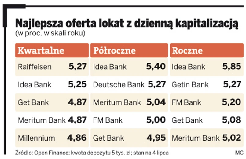 W konsekwencji banki wycofują się z depozytów długoterminowych z dzienną kapitalizacją na rzecz krótkoterminowych – do 5 miesięcy. A im bliżej końca roku, tym więcej będzie atrakcyjnych ofert lokat trzy- miesięcznych i krótszych – przyznają bankowcy.