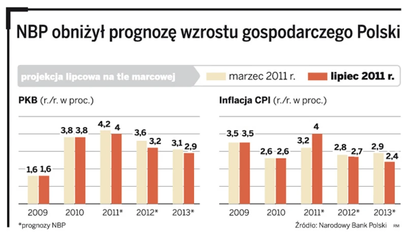 W opublikowanej wczoraj projekcji NBP podniósł w porównaniu z projekcją marcową tegoroczną prognozę inflacji o 0,8 pkt proc. – do 4 proc., ale obniżył o 0,1 pkt proc. prognozę na przyszły rok i o 0,5 pkt proc. na 2013 r. – odpowiednio do 2,8 proc. i 2,9 proc. A to oznacza powrót inflacji do poziomu akceptowanego przez