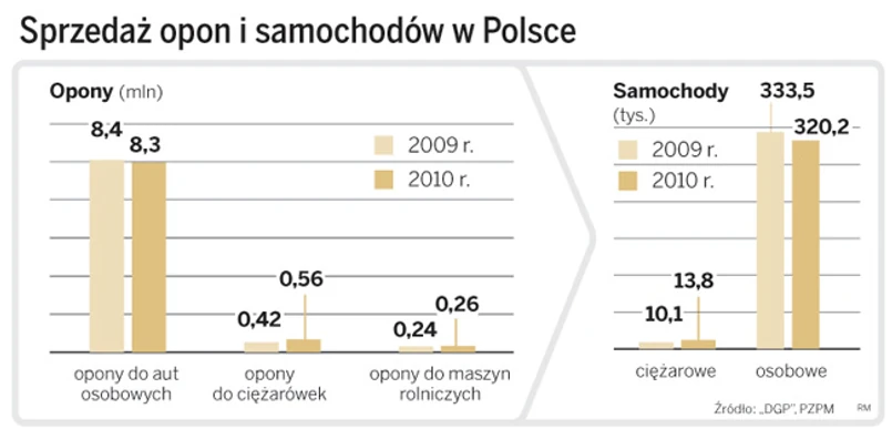 Według Grzegorza Jeziaka, szefa sprzedaży opon ciężarowych Continental Opony Polska, z problemami w zakupie opon muszą się też liczyć właściciele samochodów ciężarowych i dostawczych. Akurat w tym przypadku dystrybutorzy opon nie narzekają. Firmy transportowe kupują tabor. Jak podaje europejskie stowarzyszenie producentów samochodów ACEA, w I kw. 2011 r. w Europie sprzedano o 50 proc. więcej ciężarówek niż rok temu. Eksperci zauważają, że popytu nie hamują nawet kilkunastoprocentowe podwyżki cen opon z początku tego roku w związku z rekordowymi notowaniami kauczuku. Dziś za ten surowiec, który w 40 proc. decyduje o cenie opony, trzeba płacić dwa razy więcej niż w 2010 r.