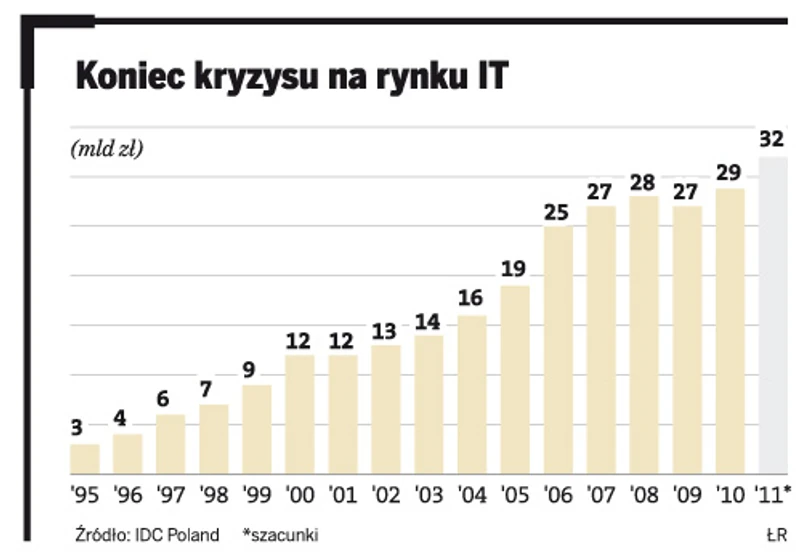 Polski rynek IT w tym roku będzie wart 32 mld zł, o 3 więcej niż rok temu.