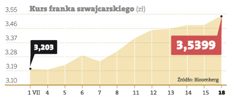 – Dopóki klienci spłacają regularnie kredyty w walutach, bankom nie zależy na dodatkowych zabezpieczeniach – mówi Wojciech Sury, rzecznik Getin Noble. Ponadto przedstawiciele banków podkreślają, że kurs franka ma dużą zmienność i za chwilę złoty może się do niego umocnić.