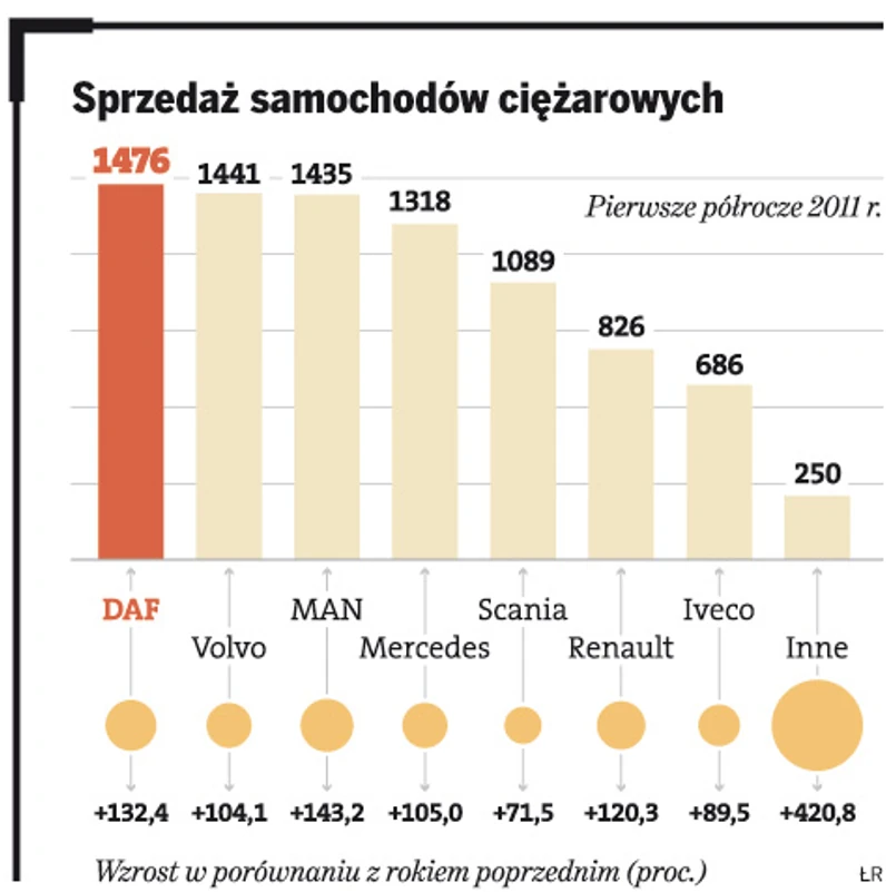 Wzmożone zakupy odczuł praktycznie każdy producent obecny na polskim rynku. Jego lider – DAF – od stycznia do końca czerwca sprzedał nad Wisłą 1476 pojazdów, podczas gdy w tym samym okresie ubiegłego roku udało mu się znaleźć nabywców na zaledwie 635 aut. Oznacza to wzrost o ponad 132 proc.! Najgorszą dynamiką przyrostów może się pochwalić Scania, która sprzedała w pierwszym półroczu 1089 pojazdów, czyli o 71,5 proc. więcej niż przed rokiem. Renault, Mercedes, Volvo czy MAN mogą się pochwalić wzrostami przekraczającymi 100 proc. – Wyraźnie większe zainteresowanie autami widać praktycznie gołym okiem – przyznaje Dariusz Radulski z Renault Trucks.