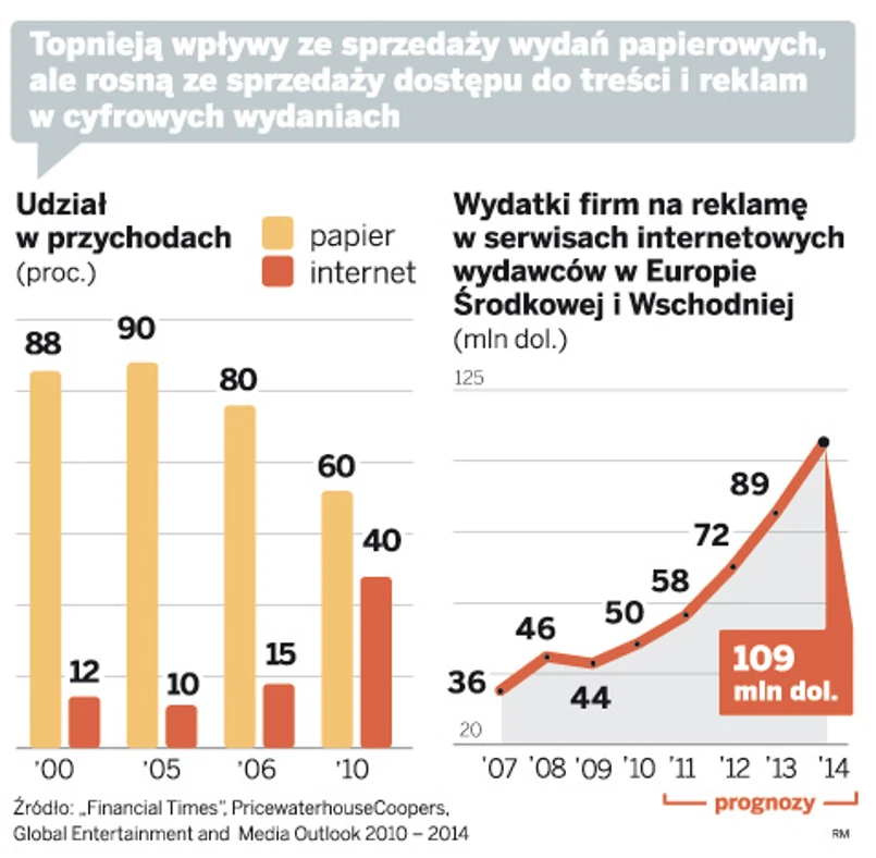 Przypadek „NYT” pokazuje jednak, że nawet duża liczba płacących za cyfrowe treści nie przekłada się na pieniądze. Nawet jeśli roczną prenumeratę po 200 dol. kupi 500 tys. osób, jest z tego 100 mln dol. Dużo i mało zarazem. Przychody generowane przez papier dają 2 mld dol. By osiągnąć ten wynik, gazeta musiałaby mieć 10 mln płacących prenumeratorów w internecie. Eksperci podkreślają jednak, że płacący czytelnicy mają znacznie większy potencjał, bo można więcej zarobić też na kierowanych do nich reklamach.