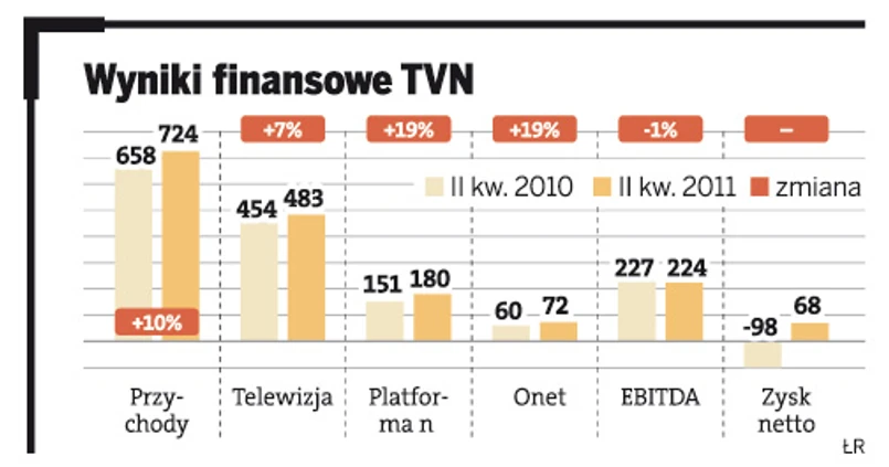 Do poprawy nastawienia inwestorów na pewno nie przyczyniły się opublikowane wczoraj przez TVN wyniki. Wprawdzie spółka zwiększyła przychody o 10 proc., ale na czysto zarobiła 68 mln zł, podczas gdy przed rokiem zysk wynosił 98 mln zł. Wpływy internetu urosły o 19 proc. Analityków rozczarował jednak wynik EBITDA (zysk operacyjny przed amortyzacją). Analitycy tłumaczą, że wpłynęły na to zbyt wysokie koszty produkcji programu, których nie zrekompensował wzrost przychodów.