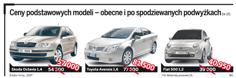 Tyle że na przykład marki ze stajni Volkswagena zapewniają, że u nich ceny nie drgną. – W najbliższym czasie nie będzie podwyżek – zapewnia Marcin Weksej, rzecznik prasowy Skoda Auto Polska.
