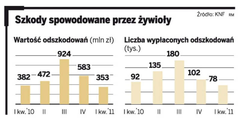 Mimo to nie można porównywać ostatnich tygodni z sytuacją z wiosny 2010 r., kiedy południową Polskę nawiedziła powódź. Wówczas do samej Warty tylko w maju napłynęło 7,5 tys. szkód na łączną kwotę ok. 50 mln zł.