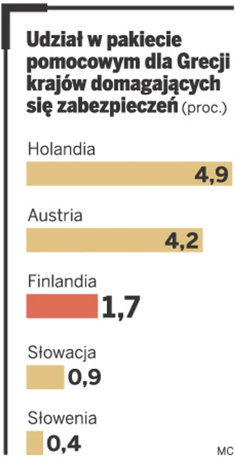 Jednak eksperci ostrzegają, że żądania wysuwane przez Finlandię de facto stawiają Grecję pod ścianą. – Dwustronne porozumienie między Helsinkami a Atenami oznacza, że z pakietu pomocowego zostaje wycofany fiński wkład. Grecja po prostu nie ma wystarczająco wolnych środków, aby taki prezent robić kolejnym krajom – tłumaczy analityk banku Nordea Jan von Gerich.